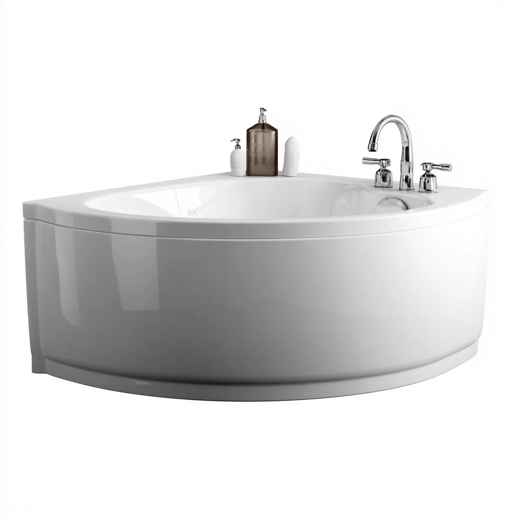 Esta bañera acrílica de esquina está diseñada para optimizar el espacio del baño y ofrecer una experiencia de baño cómoda y relajante. Su forma curva se adapta perfectamente a la esquina, creando una zona de baño amplia y acogedora.