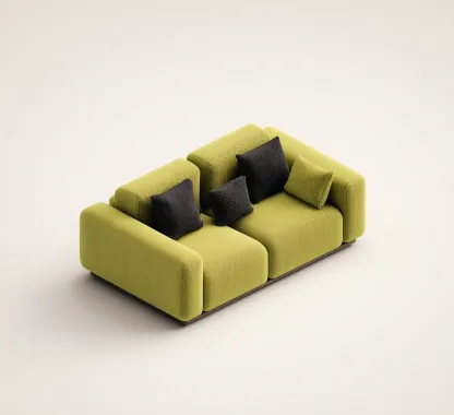 Este sofá de 2 plazas combina un diseño moderno con una estructura compacta, ideal para crear una zona de descanso funcional en el salón. Su forma equilibrada y su estilo contemporáneo permiten integrarlo fácilmente en distintos ambientes interiores.